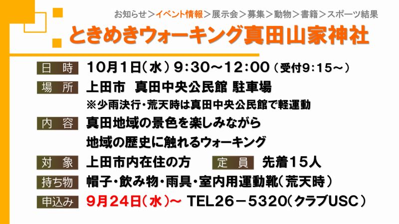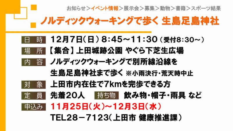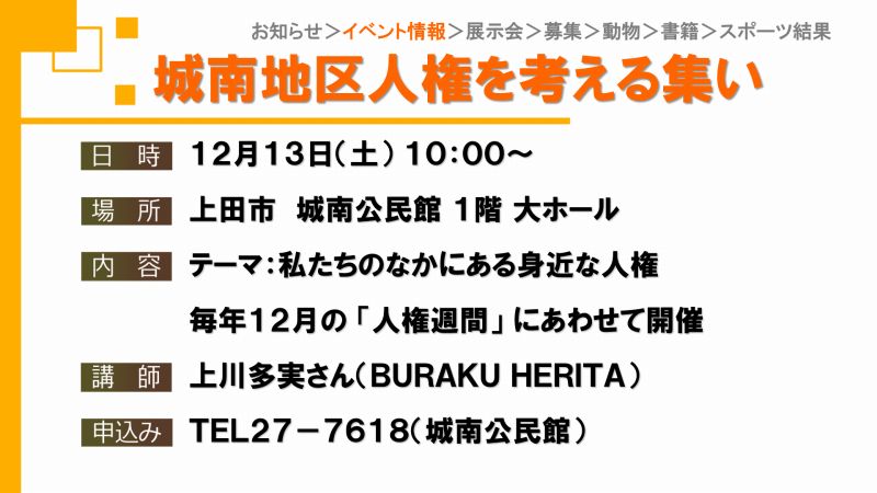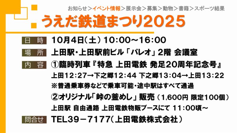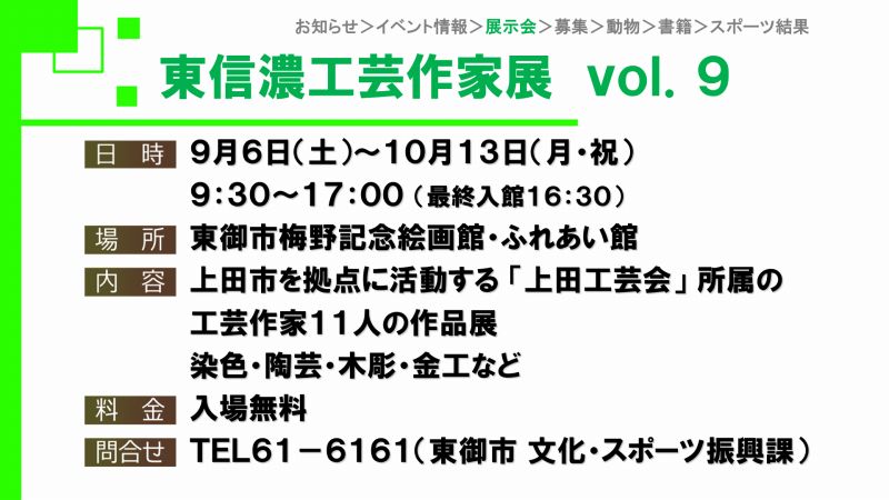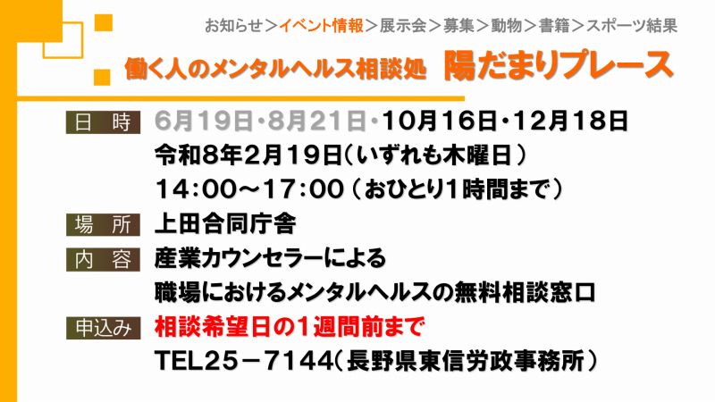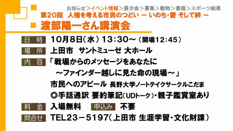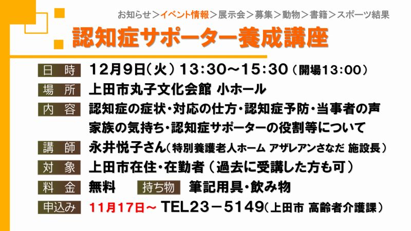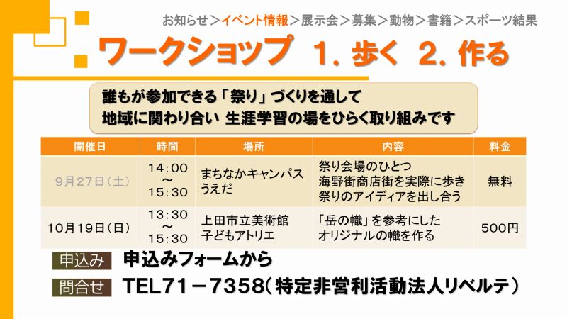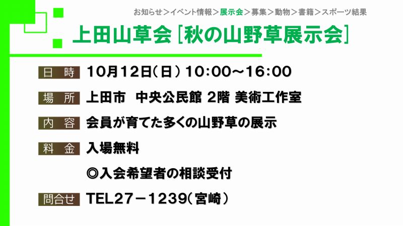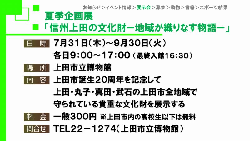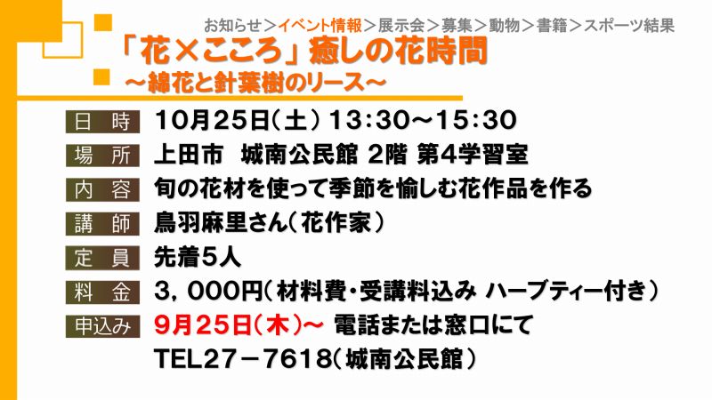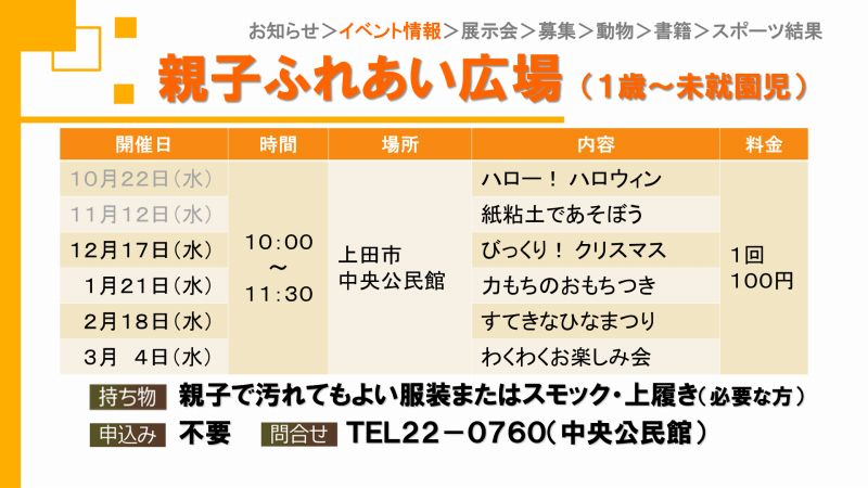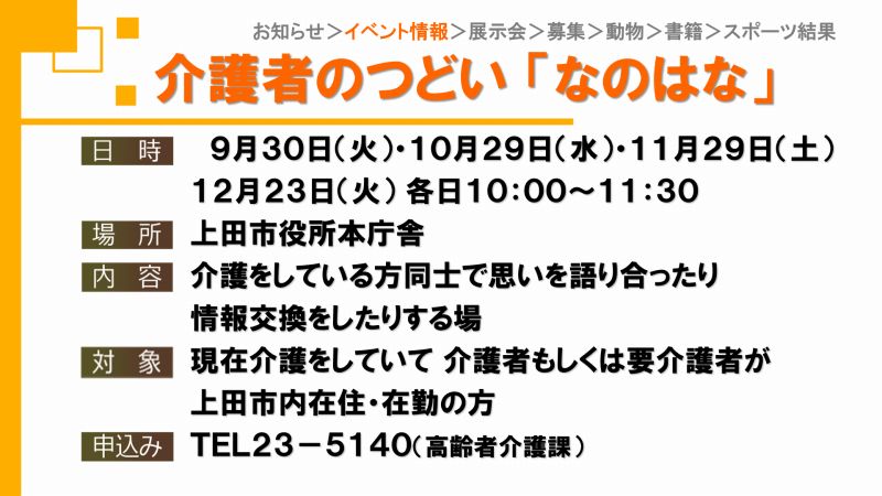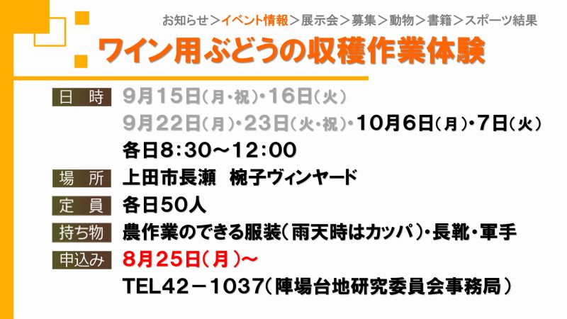 UCVイベントカレンダーは上田市、東御市、坂城町、青木村のイベント観光情報です。