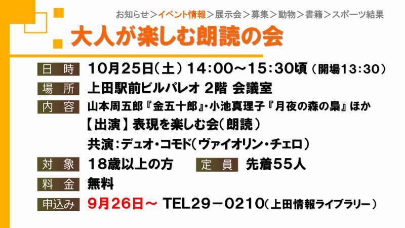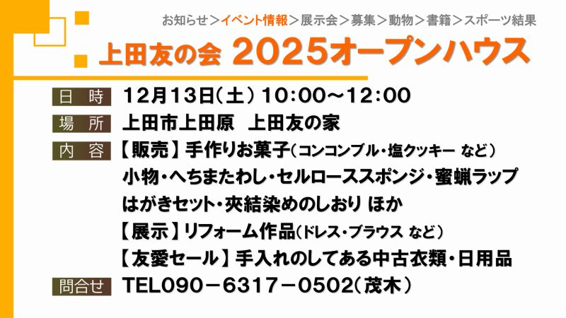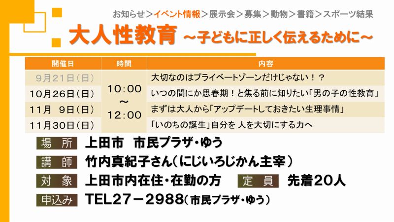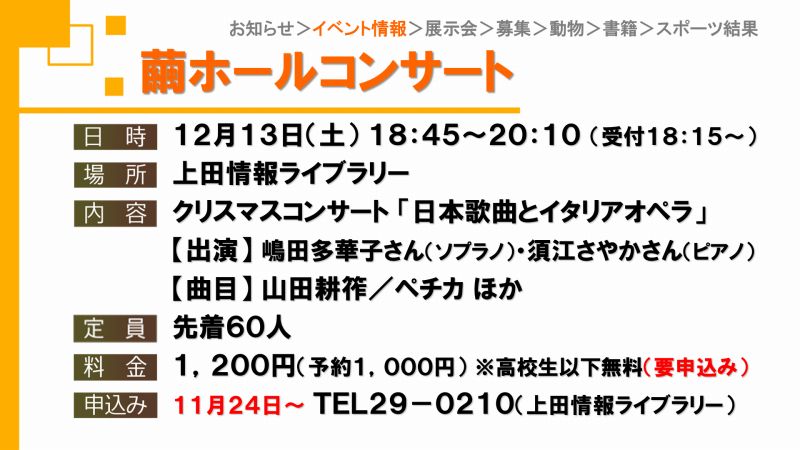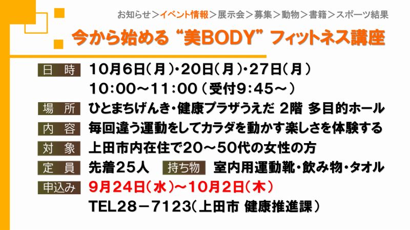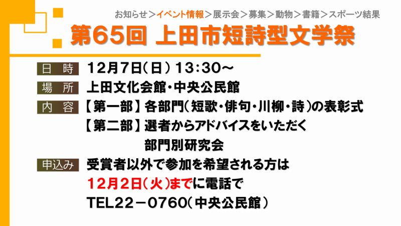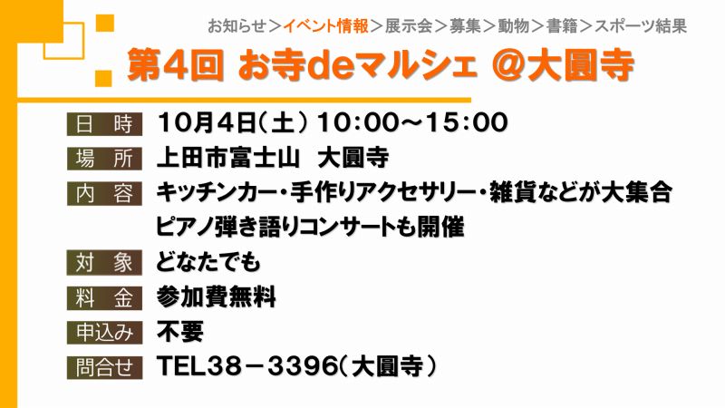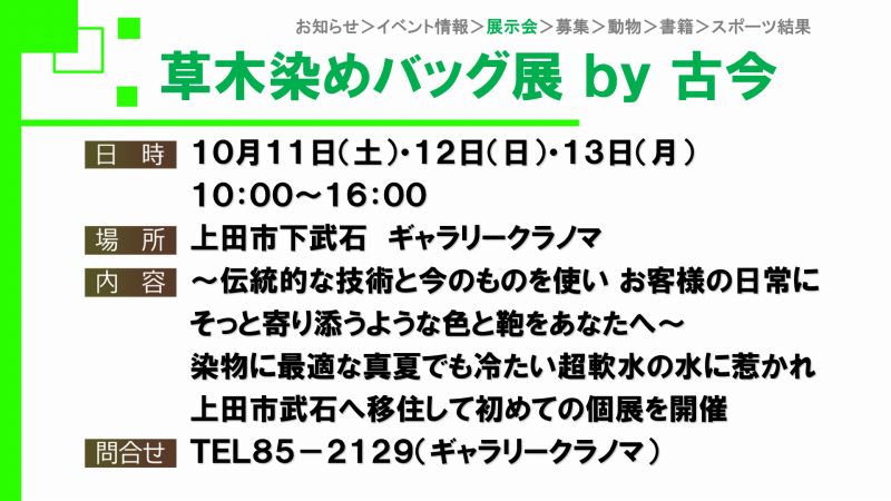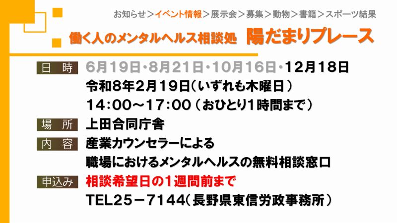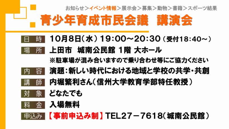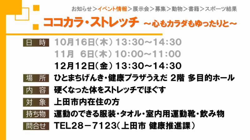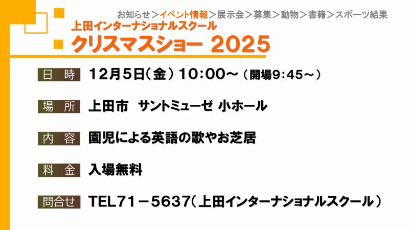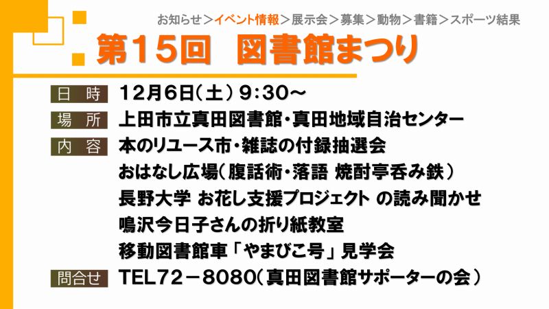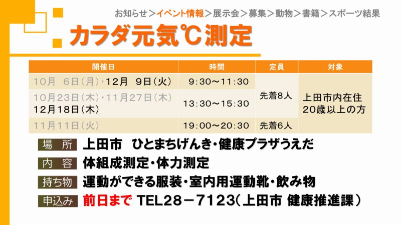 UCVイベントカレンダーは上田市、東御市、坂城町、青木村のイベント観光情報です。