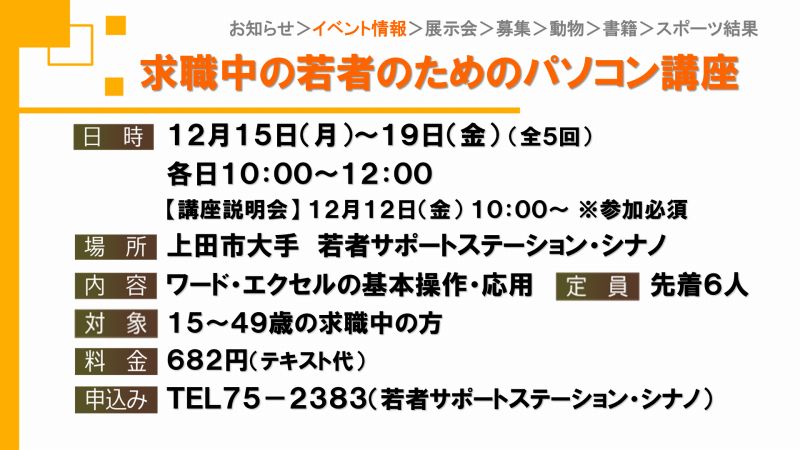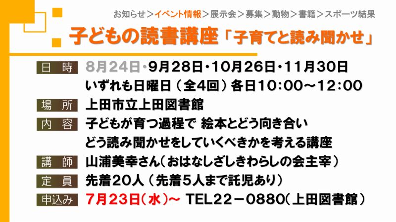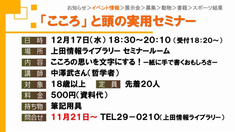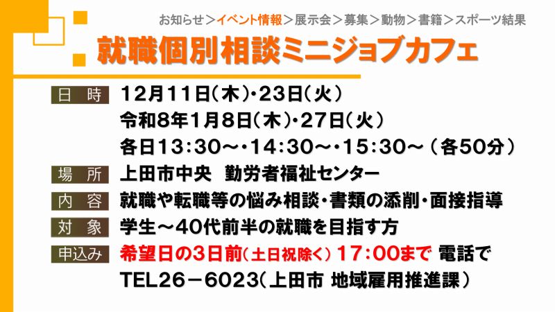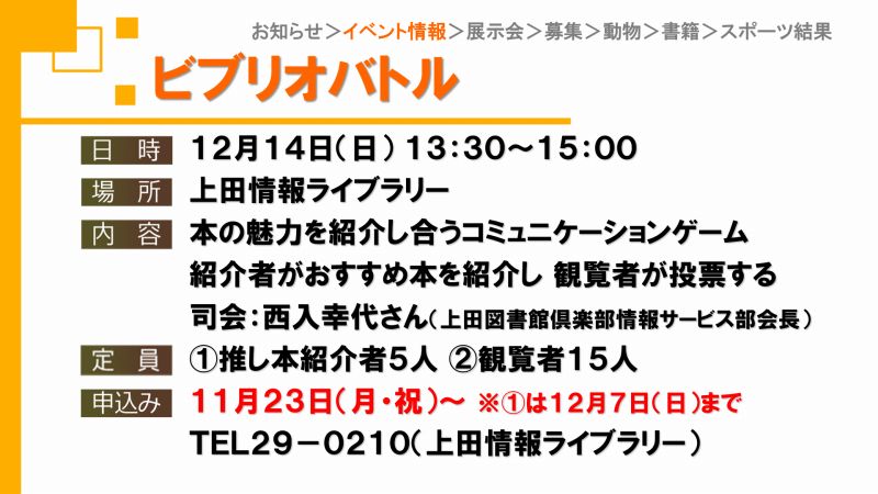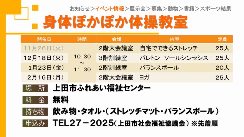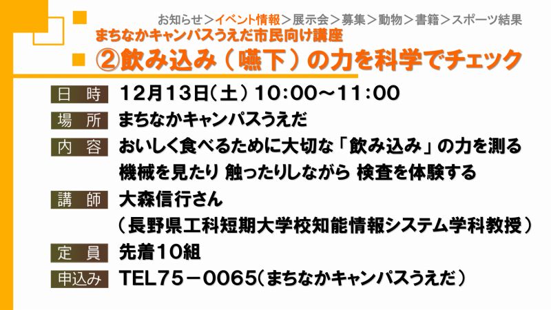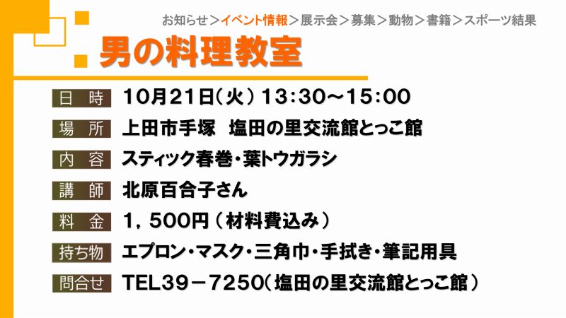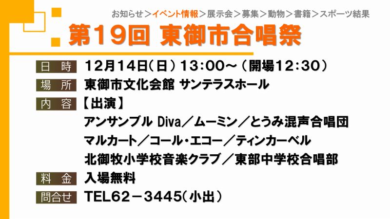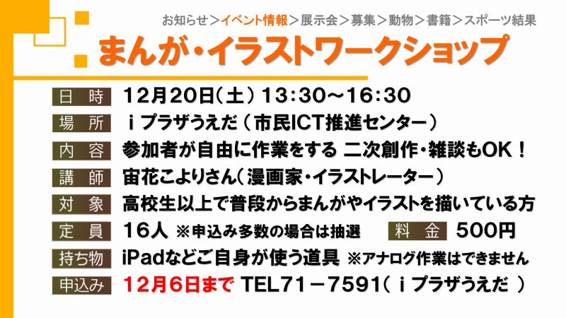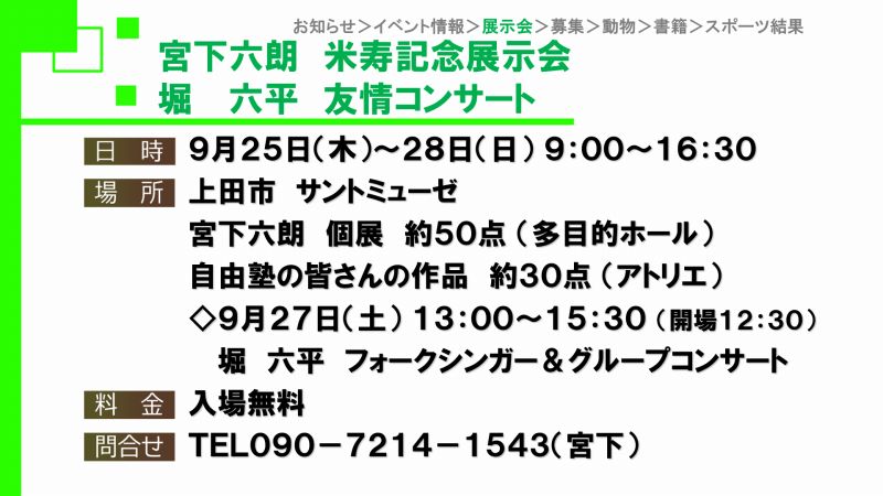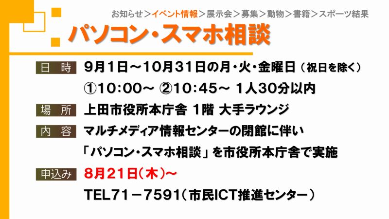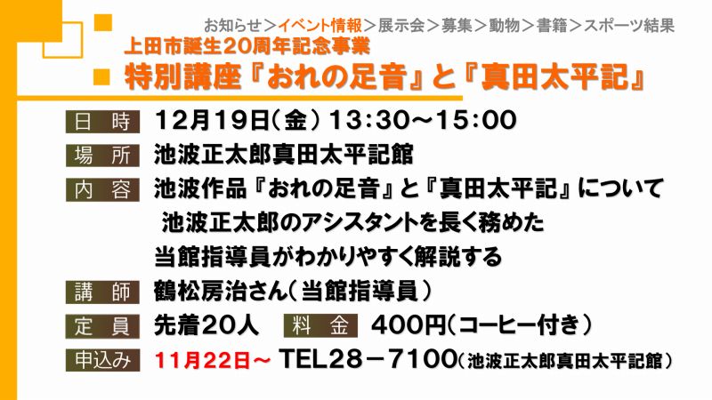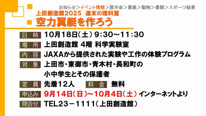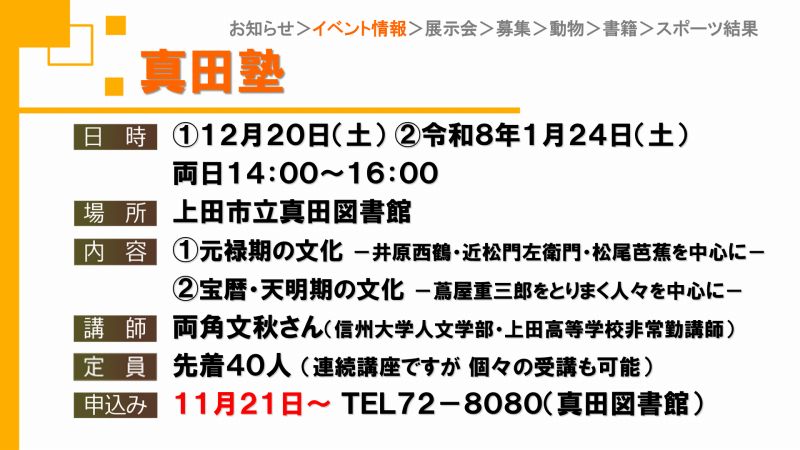 UCVイベントカレンダーは上田市、東御市、坂城町、青木村のイベント観光情報です。