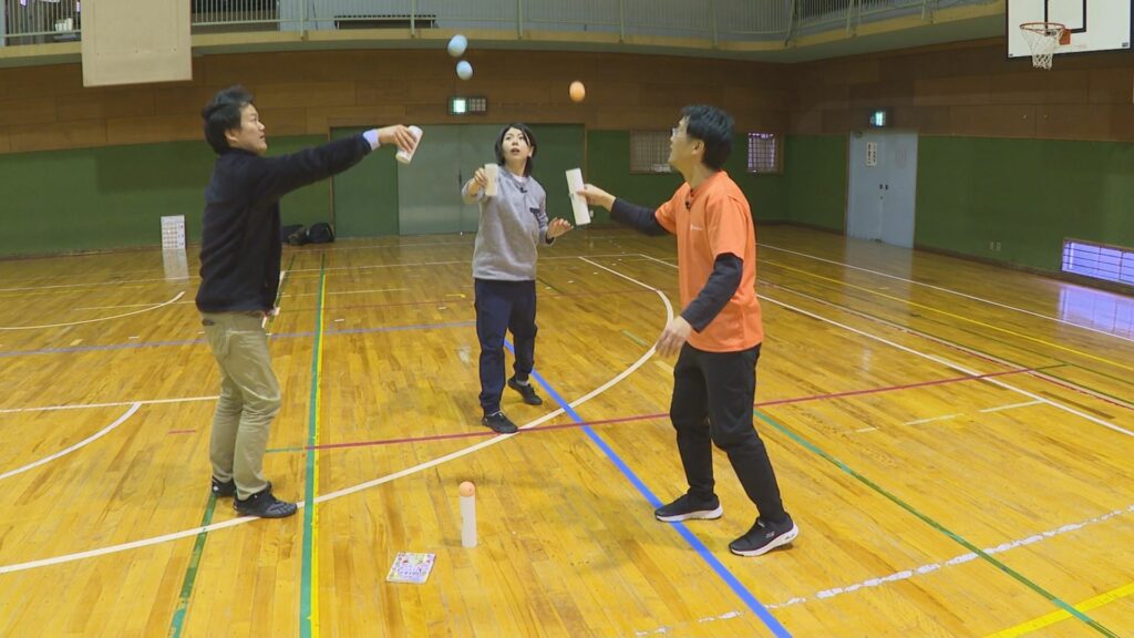 コーナー ちゃれスポJでは上田市発祥のニュースポーツ「筒けん」に挑戦します。筒けんは、砂の入ったボールと筒を使った「けん玉」のようなスポーツです。考案者の清水さんに教わりながら、さまざまな技にチャレンジします。寒い冬、体を動かして運動不足を解消しましょう。