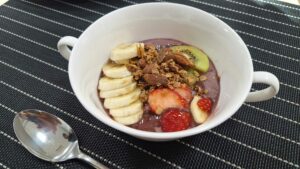トッピング用のフルーツ(いちご・バナナ・キウイ・リンゴなどお好みのもの)、グラノーラ、はちみつ…適宜
