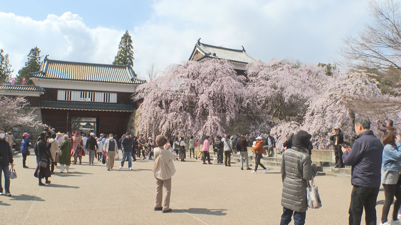 旧市民会館解体工事に伴い撤去した上田城跡公園櫓門のライブカメラを、設置場所を代えて再開しました。櫓門前のシダレザクラの様子をご覧ください。