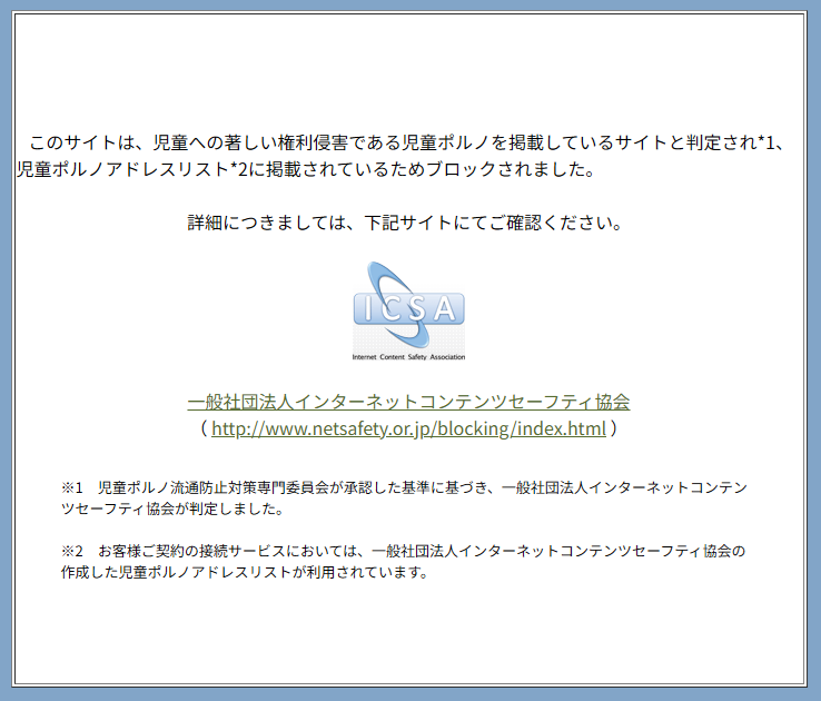 コンテンツセーフティ協会(ICSA)が提供する「児童ポルノ掲載アドレスリスト」に登録